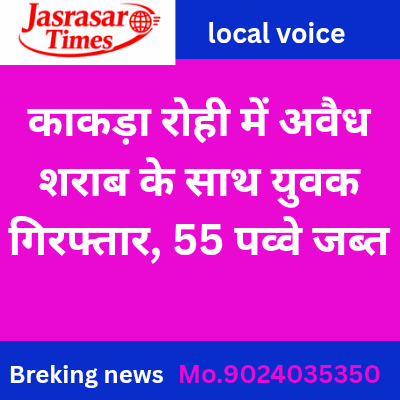 जसरासर | थाना जसरासर पुलिस ने अवैध शराब के खिलाफ चलाए जा रहे अभियान के तहत बड़ी कार्रवाई करते हुए रोही थावरिया क्षेत्र के धुंपालिया फांटा से एक व्यक्ति को अवैध शराब के साथ गिरफ्तार किया है। पुलिस ने आरोपी के कब्जे से लॉयन देशी सादा मदिरा के कुल 95 पव्वे बरामद किए हैं।पुलिस के … Read more